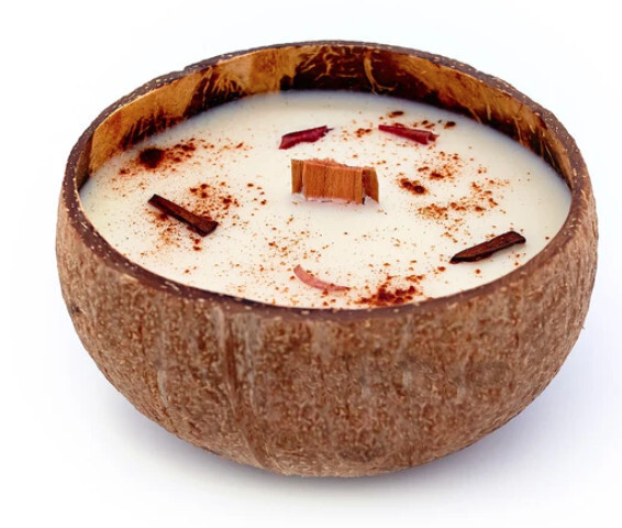 Svíčka v kokosu - vůně Jablko a skořice - Sójové svíčky v kokosové skořápce jsou krásnou ozdobou a dekorací. Svíčky neobsahují parafín, který je vedlejším produktem ropného průmyslu.
