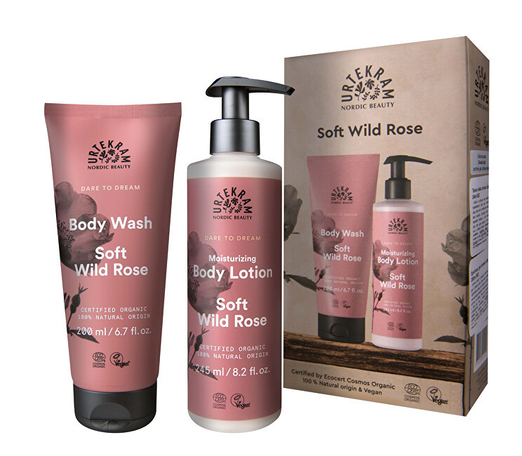 Urtekram Dárková sada Divoká růže sprchový gel a tělové mléko