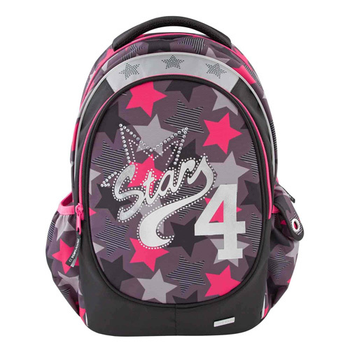Skvělý školní batoh značky Top Model se hodí do výbavy především mladším školačkám či studentkám. Batoh disponuje ergonomicky zpevněnými a prodyšnými zády. Dále jsou součástí dva pohodlné, délkově nastavitelné, ramenní popruhy s polstrováním a měkkým poutkem do ruky. Tento mimořádně praktický batoh nabízí dvě velké kapsy, prostřední s jednoduchým organizérem a prostornou přední kapsu. Vše uzavíratelné na zip. Dvě postranní kapsy na láhev s pitím. Batoh je vyveden z kvalitního a vysoce odolného polyesteru. Nechybí reflexní prvky pro bezpečnost Vašich dětí.Rozměry: výška 44 cm, šířka 34 cm, hloubka 23 cm. Materiálové složení: 100% polyester.