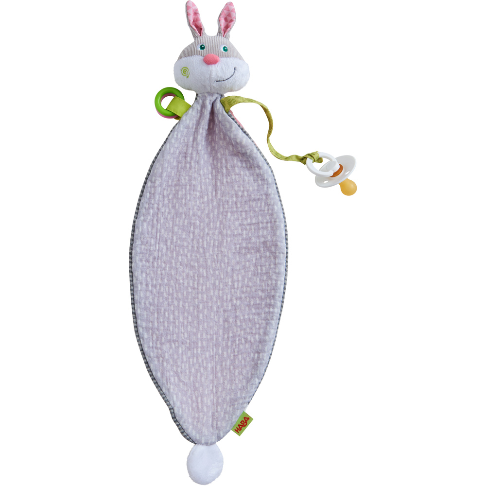 Hopík - hop! Tento roztomilý zajíček je kamarádem i plyšovým mojkáčikom. Když je srolovaný, z plyšového mojkáčika se rychle stane roztomilá postavička s fascinujícími prvky na dotek, poslech a zkoumání. Stimuluje zvukové a texturu efekty, obsahuje poutko pro připojení oblíbeného dudlíku. Zároveň je to i hezký dárek na uvítanou miminka. Vhodné pro děti: od narození