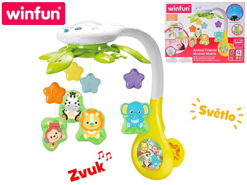Kolotoč nad postýlku zvířátka safari na baterie se světlem, zvukem a projektorem 0m+ v krabičce