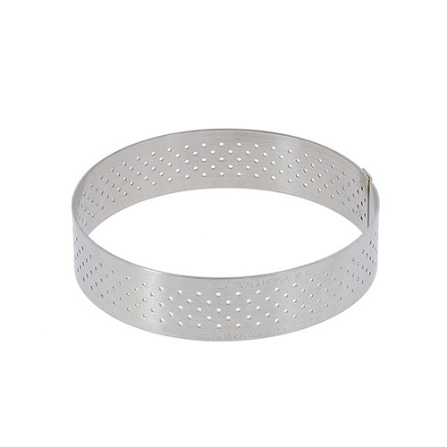 Vlastnosti:- výška 3,5 cm- průměr 12,5 cm- děrovaná kruhová forma z nerezové oceli vyvinutá ve spolupráci s Ecole du Grand Chocolat Valrhona- ideální na koláče nebo jiné dezerty, pro přípravu listového nebo křehkého těsta, materiál je posetý otvory pro rovnoměrné pečení hran koláčů- rovná hrana umožňuje bezchybnou povrchovou úpravu- pružinová nerezová ocel- snadné uvolnění formy, která se vždy vrátí do původního tvaru, dokonale zarovnané strany, bez svařování- perfektní povrchová úprava, vhodné do lednic i mrazáků- vhodná do myčky- dostupné průměry: od 5,5 do 28,5 cm