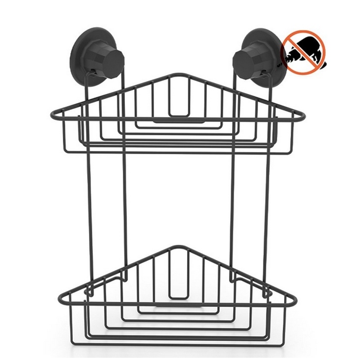 Polička roh koupel matná černá 39x21x21cm 2patra hranatá