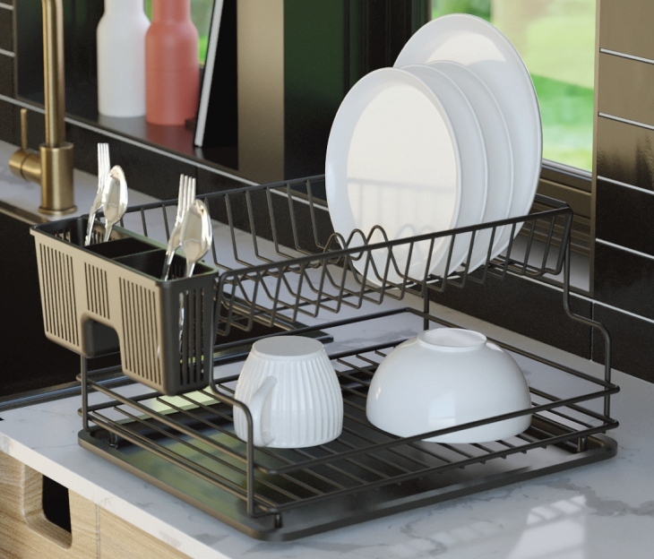 Odkap na nádobí matná černá 36x30x21cm 2patra