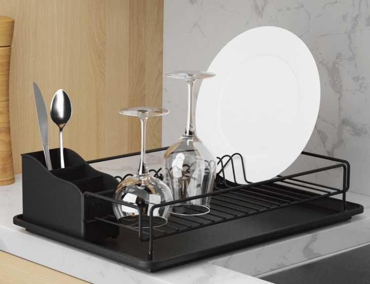 Odkap na nádobí matná černá/černá 48x33x12cm