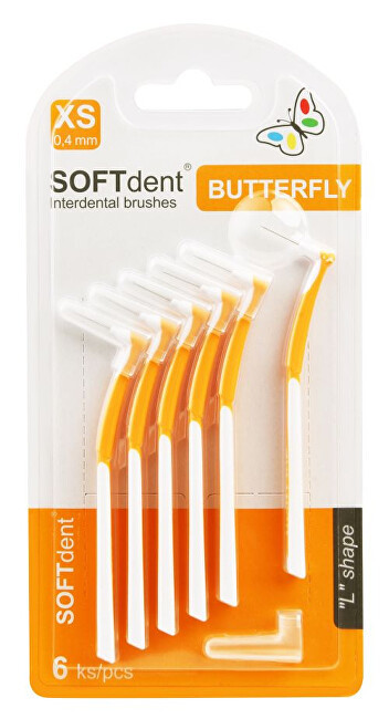 Butterfly Mezizubní kartáček zahnutý - Ústní hygiena patří k důležitým součástem každodenní péče o naše tělo. Mezizubní kartáček perfektně vyčistí i ty nejmenší prostory mezi zuby. Tento mezizubní kartáček nabízí velikost 0,4. Balení nabízí 6 mezizubních kartáčků SOFTdent. Starejte se o vaše zuby a mějte zářivý a zdravý úsměv.