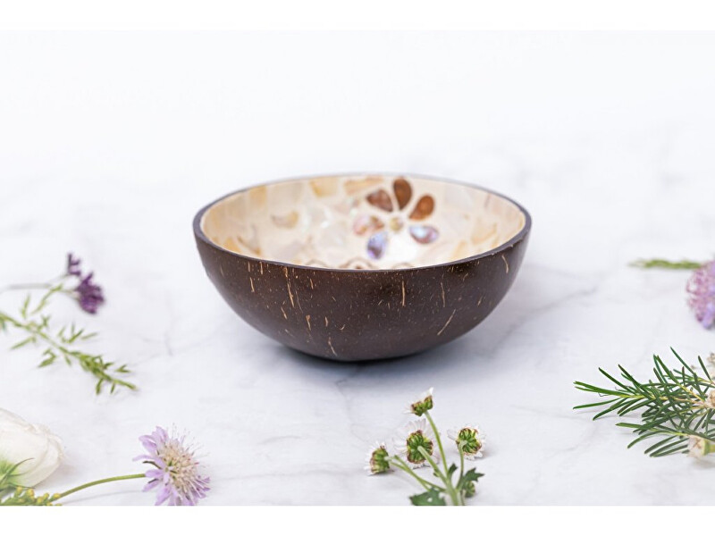Tahle unikátní miska vznikla z obyčejné kokosové skořápky. Farmáři ve Vietnamu ji s láskou obrousili, vyleštili a opatřili lakovaným mozaikovým vzorem, který ji vtiskl punc exotiky. Miska je zdravotně nezávadná a určená pro přímý styk s potravinami. Má ráda pokojovou teplotu, nepatří do mikrovlnky ani lednice. Jednou za čas je potřeba ji natřít kokosovým olejem, vydrží pak dlouho krásně lesklá. Každá miska má trochu jinou velikost, tvar a barvu.