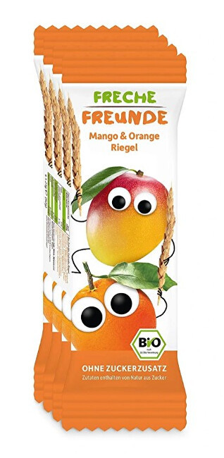BIO Ovocná tyčinka - Mango a pomeranč. Obilninové tyčinky s ovocem v bio kvalitě vhodné pro děti od ukončeného 12.měsíce. Oblíbené celozrnné ovocné tyčinky děti milují. Vhodné na cesty nebo na svačinu do školy nebo školky. Bez přidaného cukru a soli. Vhodné pro vegany. Ve složení najdete špaldu a oves. 100% přírodní složení bez chemie! Výrobek certifikovaného ekologického zemědělství.