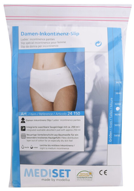 Mediset Inkontinenční dámské kalhotky se širokým měkkým pasem ingerovanou velkou sací vložkou z mikrofáze 42/44
