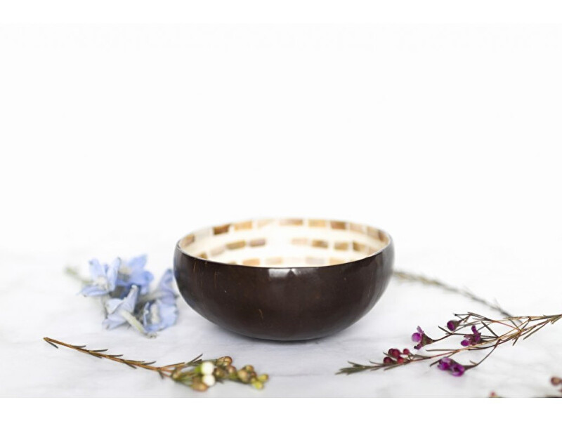 Tahle unikátní miska vznikla z obyčejné kokosové skořápky. Farmáři ve Vietnamu ji s láskou obrousili, vyleštili a opatřili lakovaným mozaikovým vzorem, který ji vtiskl punc exotiky. Miska je zdravotně nezávadná a určená pro přímý styk s potravinami. Má ráda pokojovou teplotu, nepatří do mikrovlnky ani lednice. Jednou za čas je potřeba ji natřít kokosovým olejem, vydrží pak dlouho krásně lesklá. Každá miska má trochu jinou velikost, tvar a barvu.
