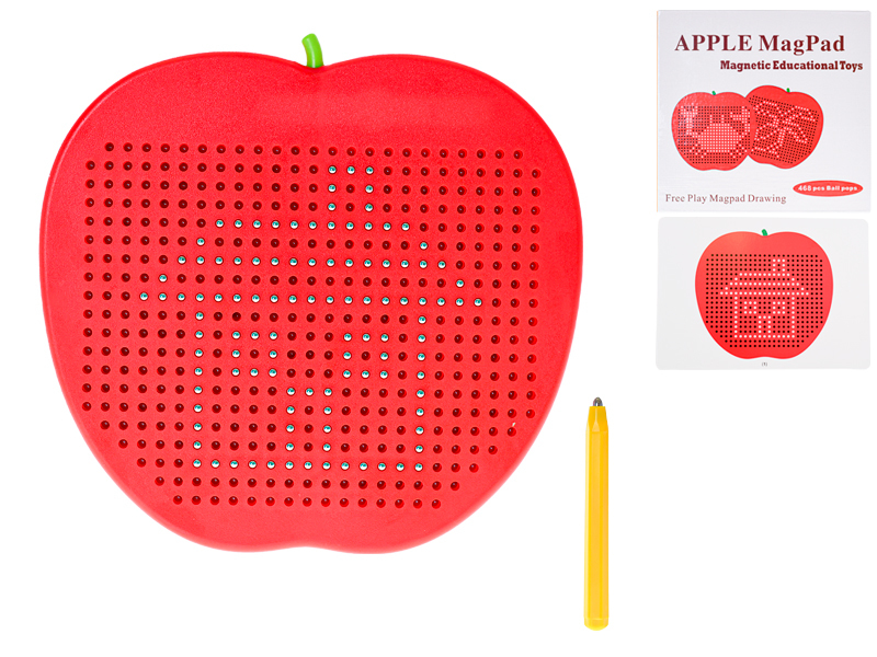 Magnetická tabulka jablko 23x22cm s perem, 10 předloh a 468ks kuliček v krabičce