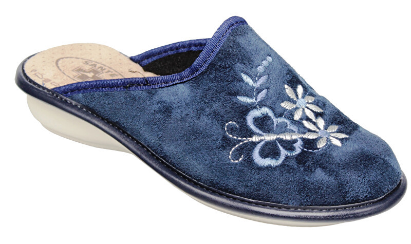 Dámská domací pantofel.Vyměkčená stélka - velice pohodlné pro celodenní nošení.Lehce zateplené.Lehký klínek - cca 3,5 cm.Textilní svršek.
