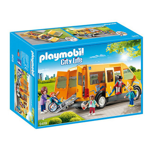 Školní mikrobus veze děti na vyučování do školy. Je v něm místo pro 4 cestující. Má posuvné boční dveře a odnímatelnou střechu. Mikrobus může díky sklopné rampě vzadu převážet vozíčkáře.Sada obsahuje: 5 figurek, autobus, invalidní vozík a další doplňky.Počet dílků: 40.Vhodné pro děti od 4 let. číst celé