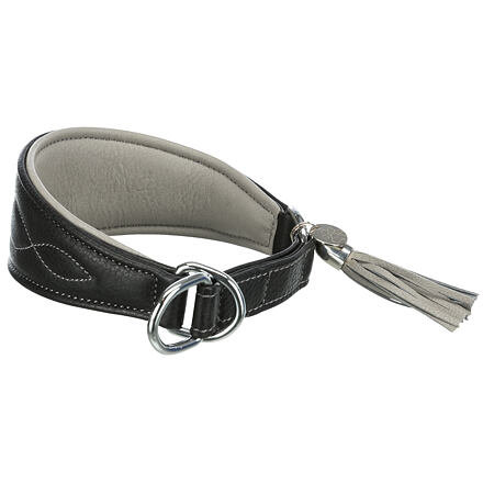 Kožený obojek ACTIVE Comfort pro chrty - černá/šedá - XS-S:24-31cm/50mm