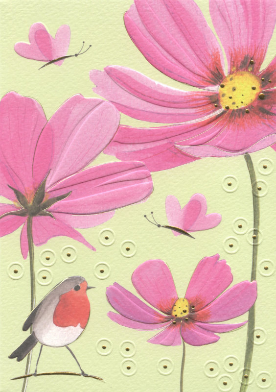 Přední strana přání je embosovaná a nalisované fólie zvýrazňují plasticitu motivů. Přání je baleno společně s obálkou v průhledné celofánové fólii.