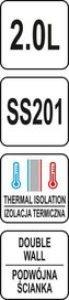 Dvojité stěny s vakuovou zónou mezi nimi poskytují vynikající tepelně izolační vlastnosti. Výsledkem je, že horké nápoje, jako je káva nebo čaj, udržují vysokou teplotu po mnoho hodin.