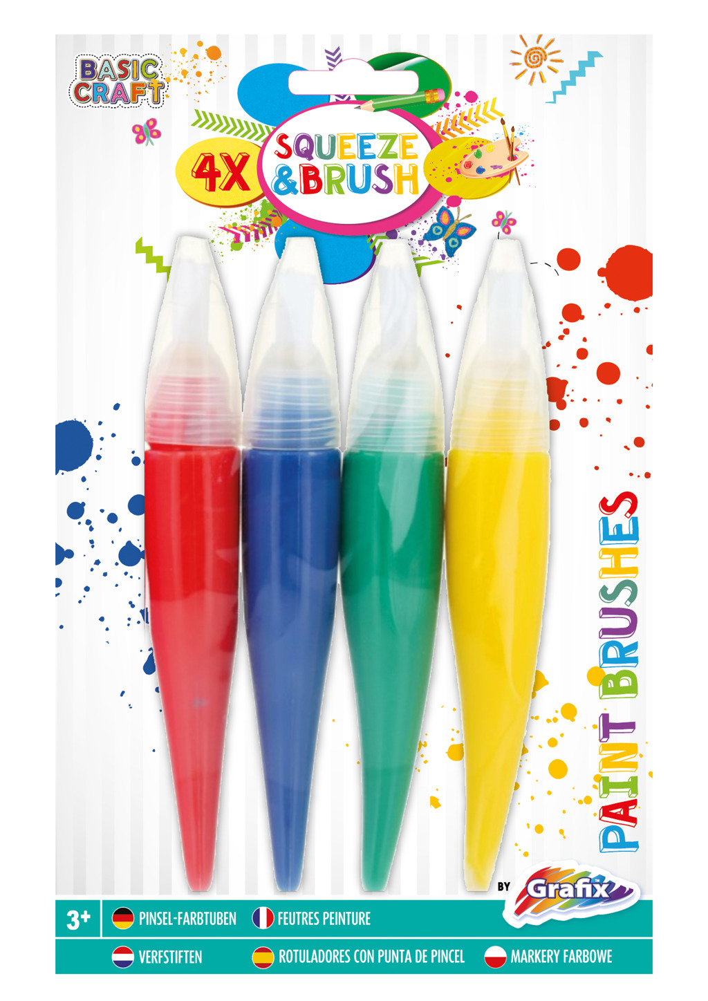 Malířské štětce barvící - zmáčkni barvu a můžeš rovnou malovat - 4 barvy - žlutá, modrá, červená a zelená. číst celé