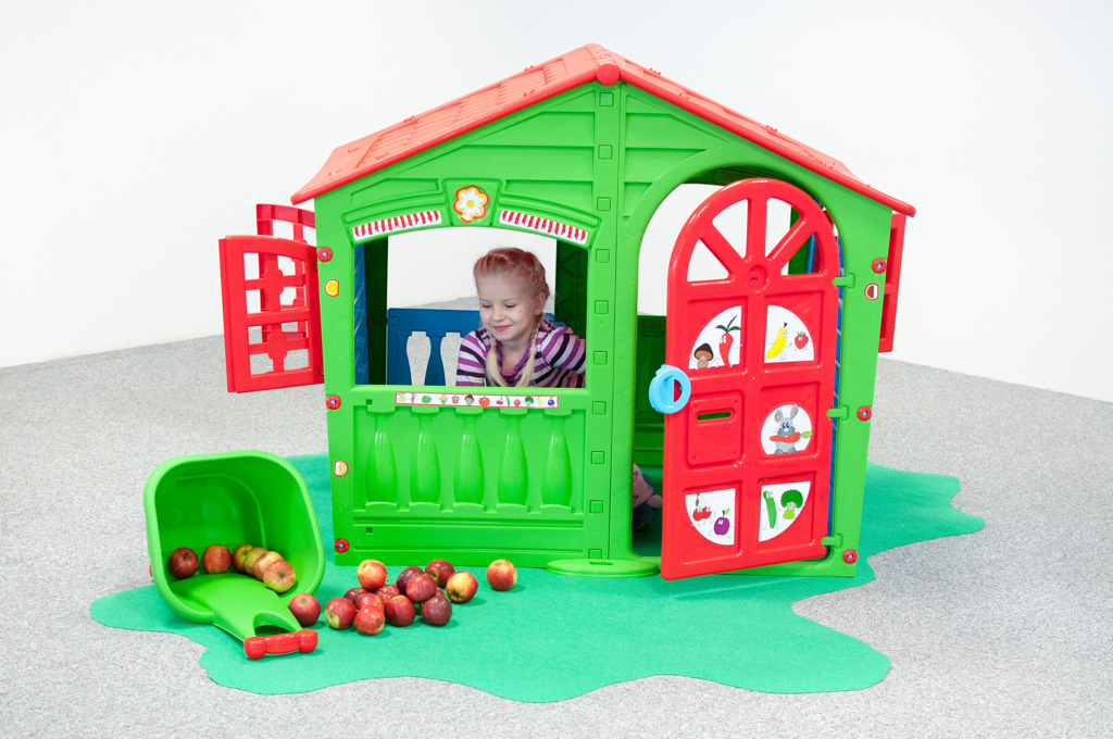 Dětský plastový domeček o půdorysu 140×111 cma výškou 115cm. Potěší vaše nejmenší svými užitnými vlastnostmi. Boční 2 okna s okenicemi a 1 zadní otevřené volné. Vstupní dveře a zadní východ na dvorek. Imitace vodovodního kohoutku n astěně domečku. Kvalitní zpracování. Domeček je vhodný nejen na zahradu, ale i do větších dětských pokojů. Rozměry (šxdxv): 140 × 111 × 115 cm