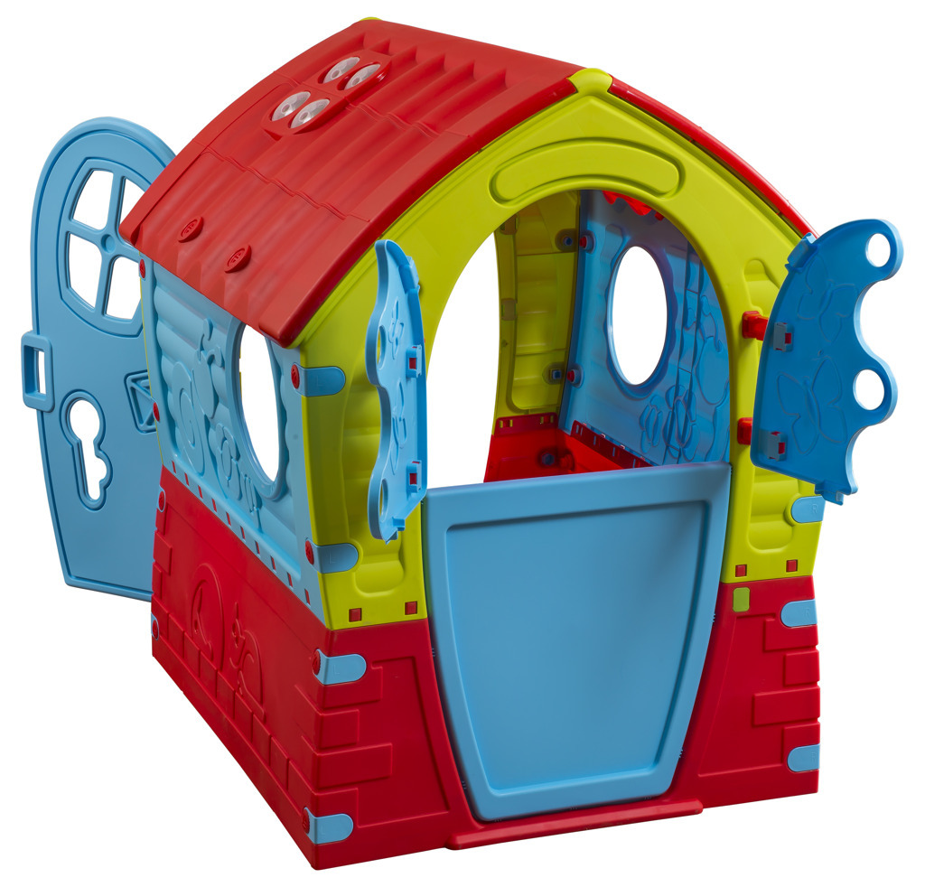 "Dětský plastový domeček potěší nejen vaše nejmenší svým pohádkovým tvarem, ale i Vás - svou příznivou cenou. Obsahuje 2 otevřená okna a 1 zadní s okenicemi. Kvalitní zpracování. veselé barvy! Domeček je vhodný nejen na zahradu, ale vzhledem ke své velikosti se hodí i do menších dětských pokojů. Rozměry (šxdxv): 90 × 95 × 110 cm