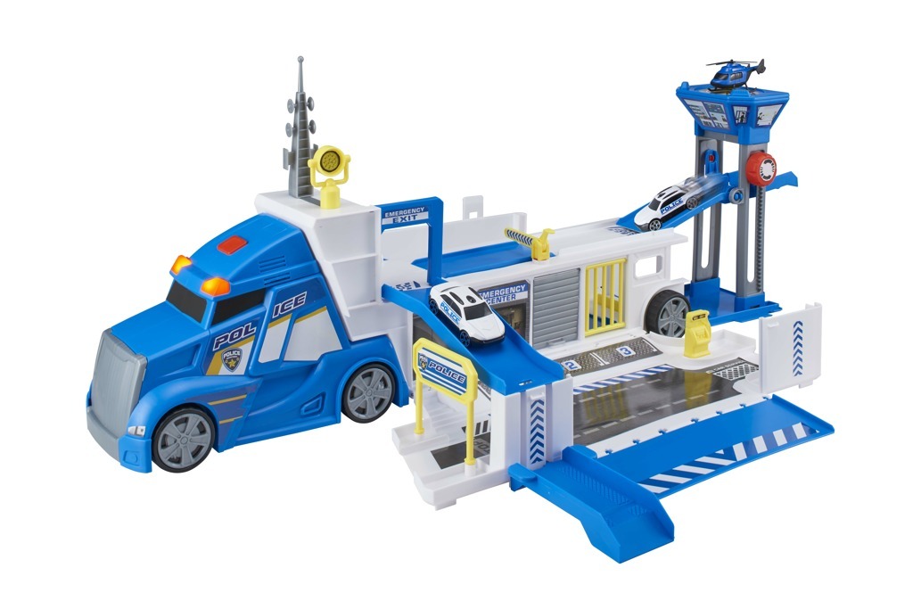 Součástí sady jsou čtyři různá auta a jedna helikoptéra, které jsou připraveny k rychlému nasazení do policejního nasazení. Auto vydává autentické zvukové efekty a jeho světla přidávají na realističnosti hry. Děti mohou využít funkční výtah, pumpu a rampu pro auta, což umožňuje hraní různých scénářů a podporuje kreativní myšlení.