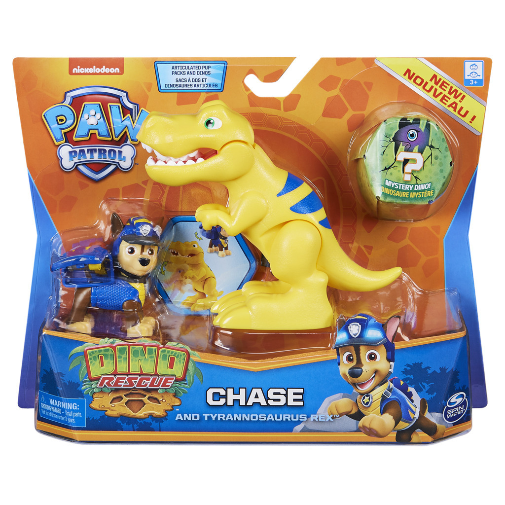Tlapková patrola jde do pravěku. Přidej se ke svým oblíbeným psím hrdinům a jejich novým kamarádům na vzrušující dinosauří záchranu s figurkou Tlapkové patroly, dinosaurem a vajíčkem. Tenhle akční set obsahuje figurku pejska, velkého dinosaura a tajnou mini dinosauří figurku. Oblíbený pejsek z Tlapkové patroly, oblečený v dino záchranné uniformě, je připraven rovnou skočit do záchranné akce. Zmáčkni tlačítko a aktivuj transformaci batůžku, který má pejsek na zádech. Poté zmáčkni ocas dinosaura a tím mu otevřeš tlamu. Vybal zbytek balení a odhal barevného mini dinosaura, kterého můžeš využít v každé záchranné akci. Se třemi úžasnými figurkami přichází k životu prehistorická zábava z televizního seriálu. Sesbírej všechny figurky s dinosaurem a vajíčkem (prodávané samostatně) a vytvářej si své vlastní záchranné mise znovu a znovu. Tlapková patrola s dinosaurem a vajíčkem je úžasným dárkem pro děti od 3 let. Obsahuje: 1 figurka hrdiny, 1 figurka dinosaura, 1 tajemná mini figurka dinosaura