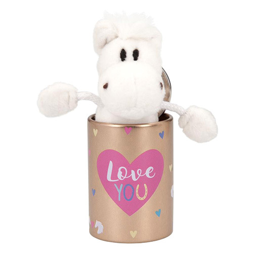 Plyšový koník v plechové krabičce Miss melody ASST, Bílý koník, se vzkazem Miluji tě