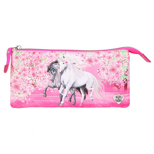 Penál taštička Miss Melody, Miss Melody a Black Angel, růžová, rozkvetlé třešně, s dvojitým zipem