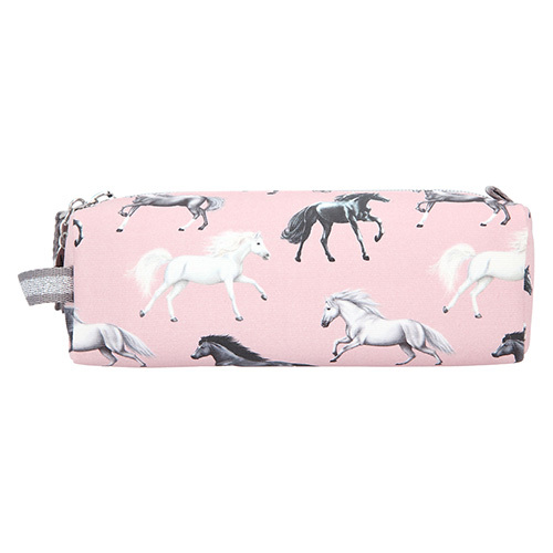 Jednoduchý penál Miss Melody, Růžový, koně - allover print, 21 x 10 x 8,5 cm