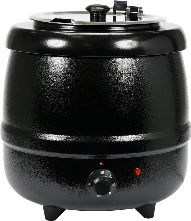 Elektrický kotlík na polévky. Doporučuje se k podávání polévek, krémů a omáček. Vyrobeno z oceli, černě lakované pouzdro poskytuje estetický vzhled. Díky tomu je kotel ideální pro bufety a hotelové restaurace. Vyjímatelná nádoba na polévku je vyrobena z nerezové oceli SS 304. Má zaoblené hrany, díky čemuž se velmi snadno čistí.