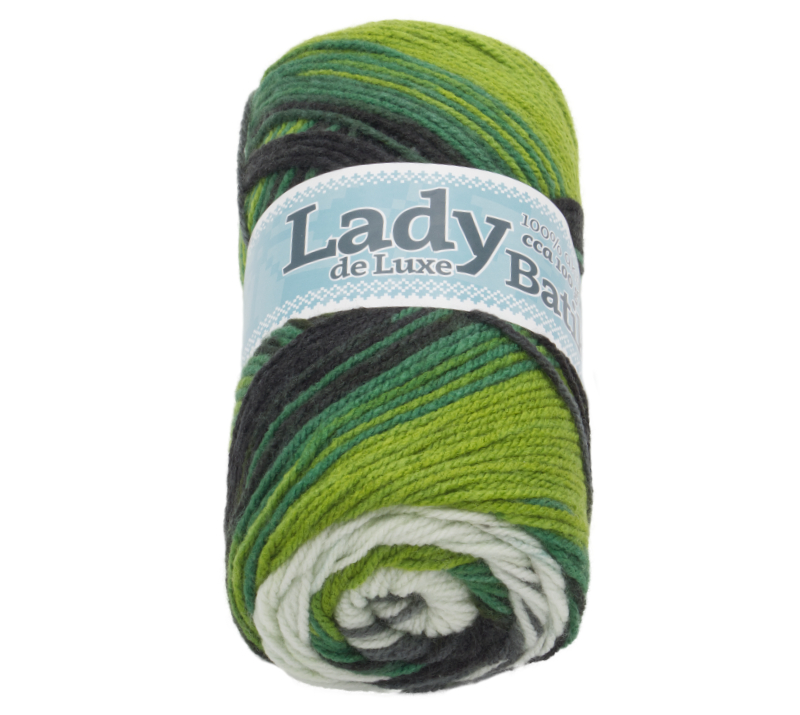 Příze LADY de Luxe - bílá, zelená - 100g / 238 m