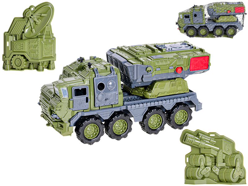 Auto vojenské 31cm s odpalovačem raket v síťce