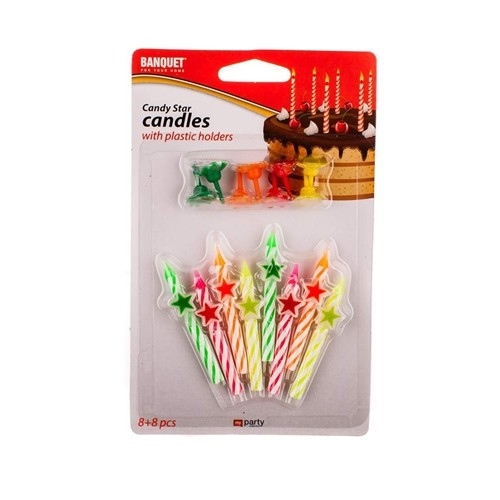 Svíčka dortová 6cm 8ks + držáky HVĚZDA PARTY