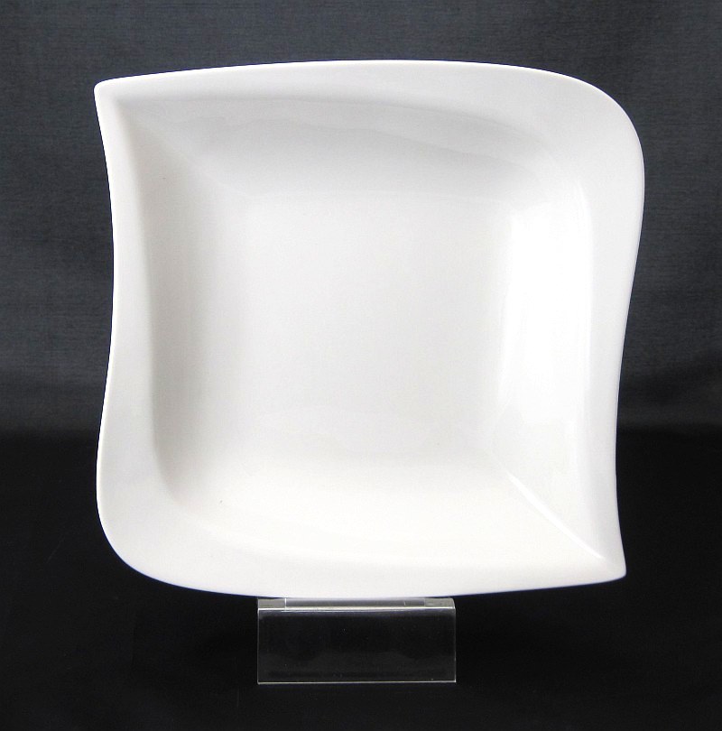 Hluboký talíř. Nevšední zajímavý tvar. Materiál: porcelán. Rozměry: 22x22x4 cm. Lze mýt v myčce na nádobí i používat v MVT. číst celé
