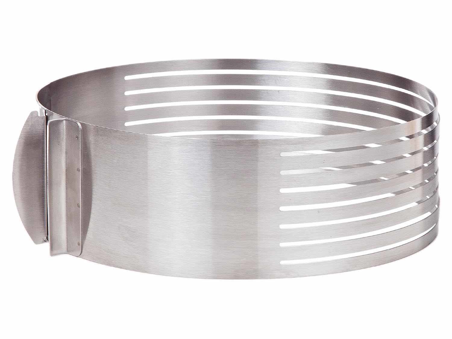Tato forma je vyrobena z kvalitního nerezu, který neabsorbuje pachy, takže vaše pečení zůstane vždy svěží a čisté. Díry v těle formy zabezpečují, že nůž nebo prořezávací struna zůstane ve stejné výšce při krájení korpusu, což zaručuje rovnoměrné vrstvy dortu.