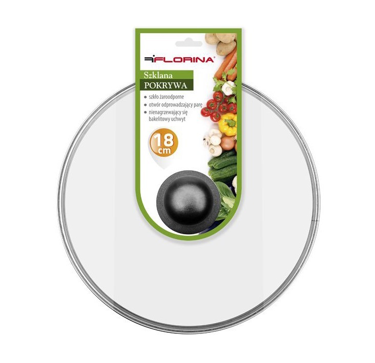 Poklice o průměru 18 cm je vybavena kovovým orámováním, které jí dodává pevnost a eleganci, a plastovým úchytem pro pohodlné a bezpečné manipulování během vaření. Díky průhlednému sklu vidíte obsah hrnce bez nutnosti zvedání poklice, což šetří energii i čas.