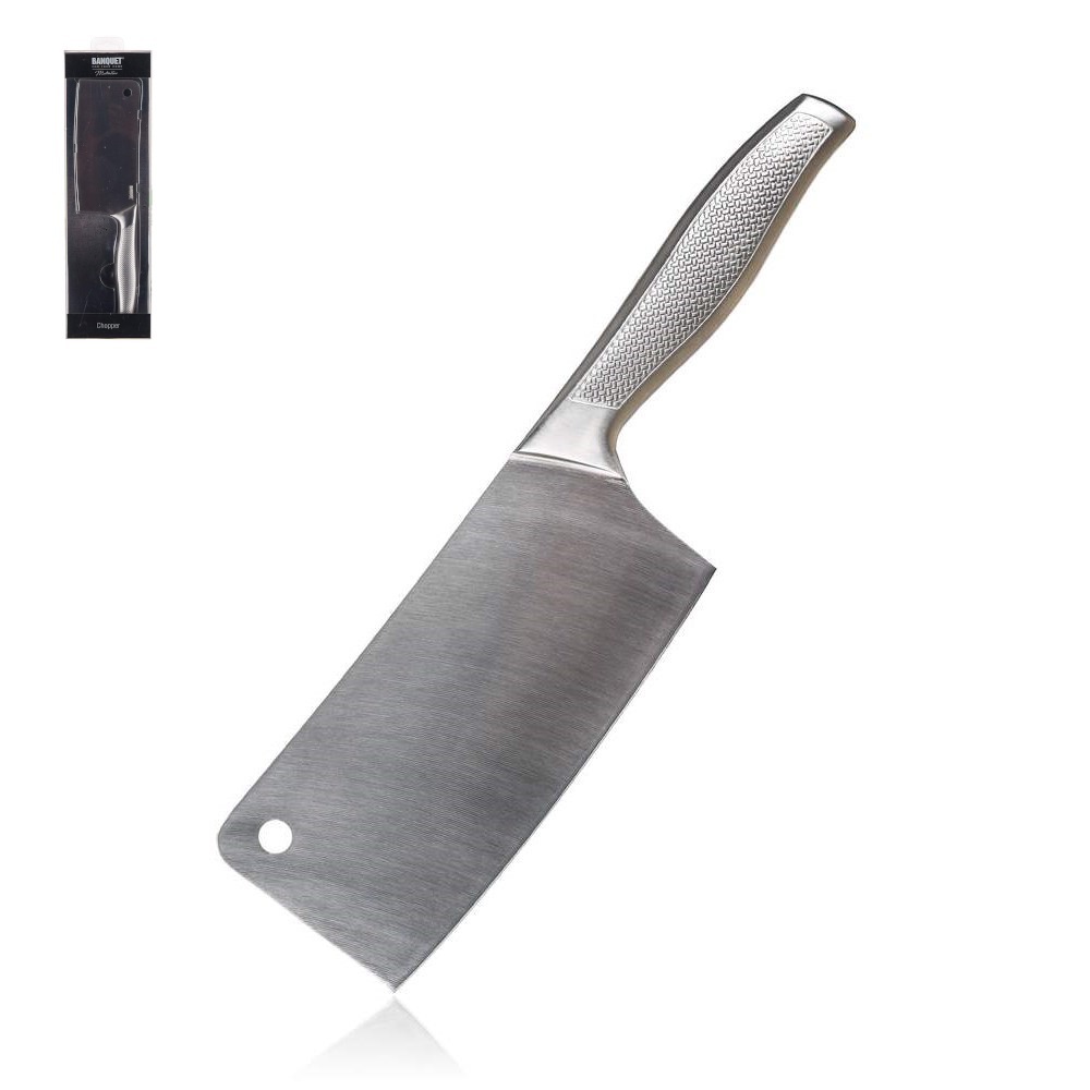 Vyrobený z odolné nerezové oceli, sekáček je nejen pevný a trvanlivý, ale také snadno udržovatelný. Délka čepele 17,5 cm poskytuje dostatek prostoru pro pohodlný a bezpečný řez, zatímco celková délka 29 cm zajišťuje pevný úchop a kontrolu při práci. Díky své kvalitě a praktičnosti se stane nezbytným pomocníkem ve vaší kuchyni.