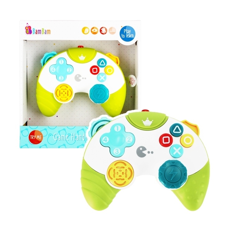 Veselá konzole nabízí různé způsoby, jak zabavit a zároveň vzdělávat - čtyři barevná tlačítka s čísly přehrávají veselou hudbu, další čtyři knoflíky s geometrickými tvary rozeznívají hravé melodie. Kreativní duše potěší samostatné tlačítko pro vlastní hudební aranžmá, které podporuje fantazii a tvořivost. Dvě otočná kolečka vydávají zvuky chrastítka, což je skvělý způsob, jak trénovat motoriku prstů a rukou. Červené blikající světlo stimuluje zrakové vjemy a dvě úrovně hlasitosti umožňují hračku přizpůsobit dle potřeby.