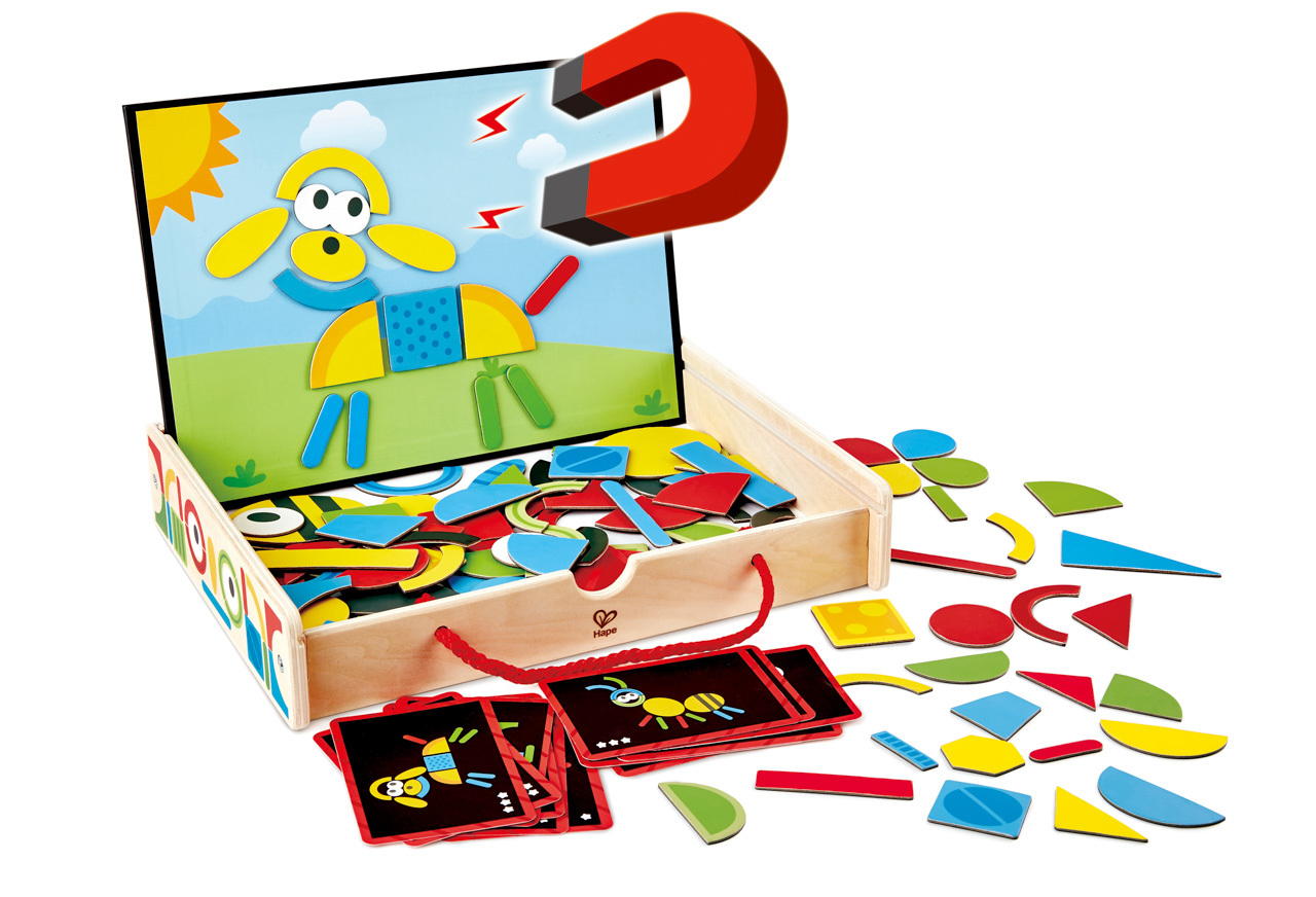 Nechte se unést svou kreativitou s tímto fantastickým magnetickým kufříkem. Vyberte si z 91 přiložených magnetických dílků různých tvarů a barev, umístěte je scénu zobrazenou na vnitřním víku nebo na prázdné zadní straně tvořte dle své fantazie. Součástí sady jsou i kartičky s obrázky pro inspiraci. Vyrobeno z kvalitního a odolného materiálu. Počet dílků: 105. Rozměr balení: 30 x 23 x 6 cm. Věk: 3+. Video: https://www.youtube.com/watch?v=0ne3WVVZ5OI