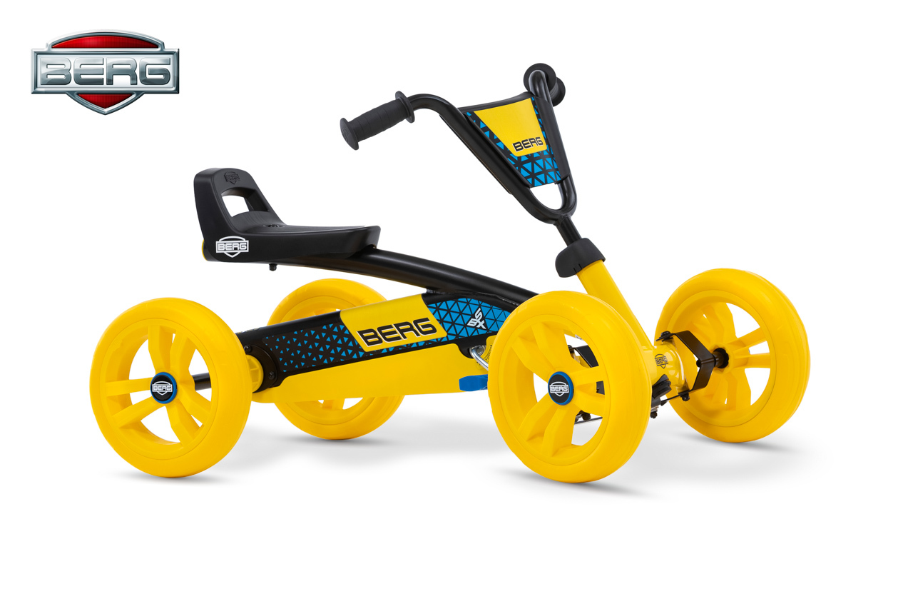 Splněný sen všech malých dětí! BERG Buzzy - BSX žluto-černá šlapací kárka je vhodná pro dívky i chlapce od 2 let. Stabilní a pevná ocelová konstrukce, nastavitelná řídítka a sedadlo. 4 tichá odolná plastová kola s pneumatikami EVA. Jízda je možná dopředu i dozadu. Volant a pedály mohou být ovládány nezávisle na sobě. Super pružné a lehké šlapání díky kuličkovým ložiskům. Roste s dětmi díky nastavitelným řídítkům a posuvnému sedadlu (výška 32 cm). Věk: 2+. Rozměr: 83 x 49 x 50 cm. Váha: 7 kg. Nosnost: 30 kg.