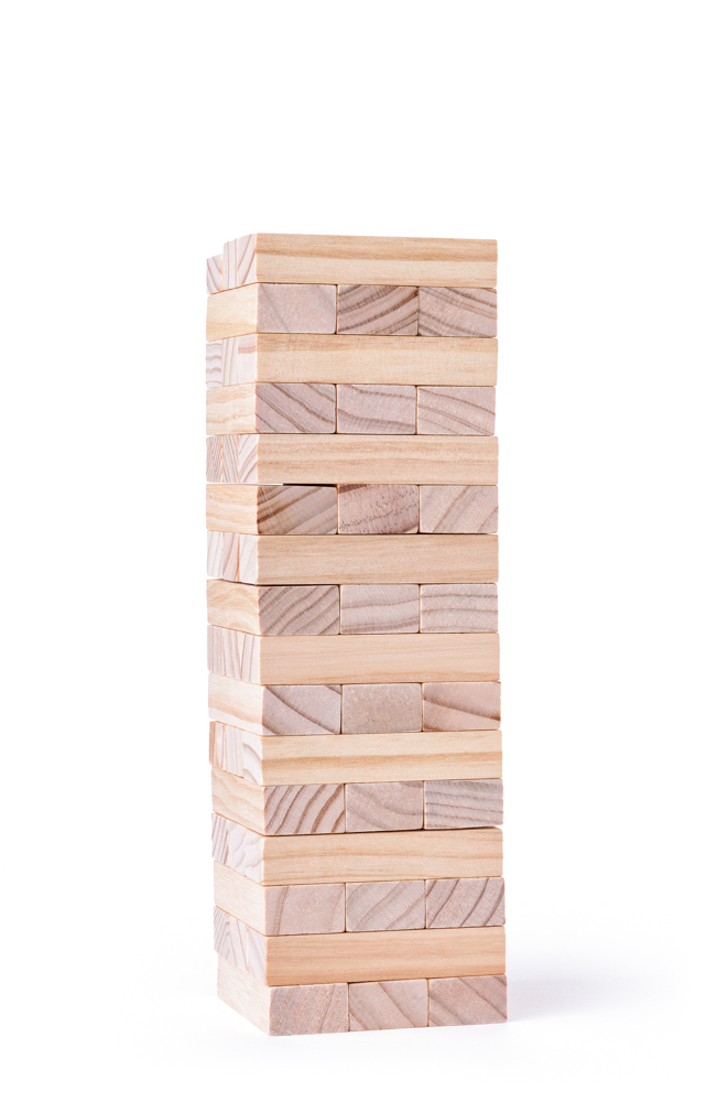 - Komplexní pevná věž se staví vrstvu po vrstvě (vždy tři kostky vedle sebe, střídavě křížem)