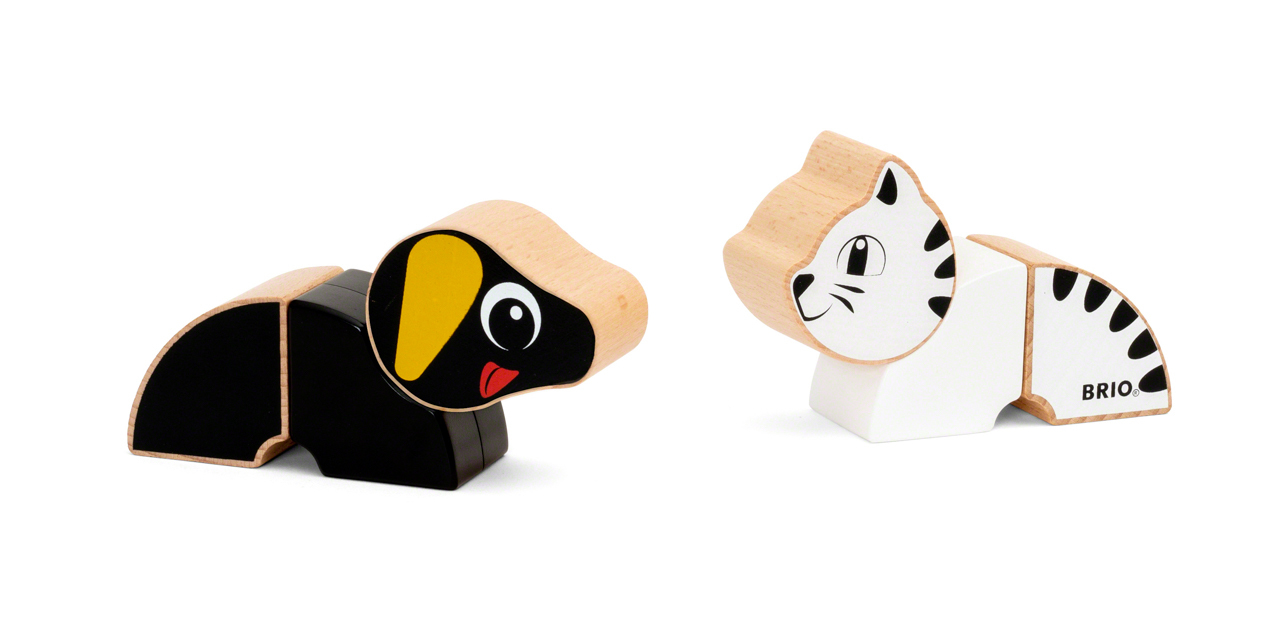 Rozkošný magnetický jezevčík a kočička. Spojujte dřevěné a plastové zvířecí části dohromady pomocí barev a vizuální paměti nebo nechte pracovat svou fantazii a vytvořte jedinečné zvíře. Silné otočné magnety usnadňují dětem hru a dělají ji příjemnější a zábavnější. Hračka podporuje vývoj dětí. Vyrobeno z kvalitního a odolného dřeva z udržitelných zdrojů. Rozměr balení: 25 x 14 x 4 cm. Počet dílků: 6. Věk: 1+