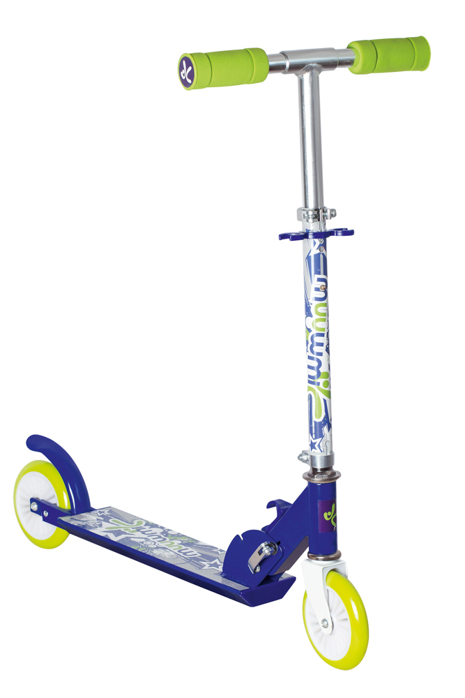 Dětská koloběžka Muuwmi je vybavena jednoduchým skládacím mechanismem. Modré provedení. Výškově nastavitelná řídítka 58-78 cm. Prostorné stupátko s rozměrem 340 x 94 mm a protiskluzovým povrchem. Litá kola PU 120 mm, 82 A. Ložiska ABEC 5. Maximální nosnost: 50 kg. Věk: 3+