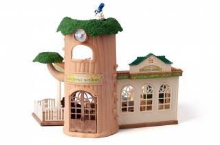 Škola u stromu. Škola v přírodě, výuka přímo v lese a k tomu i na stromě, kde je možné sledovat dalekohledem i vzdálené okolí je pro všechny malé školáky velké lákadlo! Vylezte se zvířátky do koruny stromu a užívejte si lesní atmosféru! Nádhernou vyhlídku nabízí i přilehlá školní budova, kde je možné v kombinaci se stromem vést výuku třeba o astronomii. Ve třídě jsou připraveny lavice a židličky pro 6 žáků, tabule, lavice pro učitele, učebnice, pracovní sešity a další pomůcky. Školní budovu a strom lze variabilně spojit. Na budovu školy lze umístit také budova mateřské školky. Rozměr: 29 x 26 x 29 cm. Sada obsahuje strom a školní budovu, 35 dílů. Figurky nejsou součástí balení. Rozměr balení: 38 x 33 x 21,5 cm. Věk: 3+