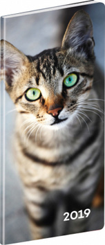 Vreckový diár Mačky SK 2019, plánovací mesačný, 8 x 18 cm