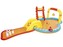 mnoho možností zábavy jako střelbu míčů do košíku, hru s kuželkami a odnímatelnou skluzavku. Spodní část tvoří nafukovací polštář,