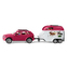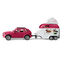 Hannah a její otec mají skvělé auto s přívěsem na koně od Schleich® Horse Club! Široká škála funkcí nabízí spoustu možností hraní. Sedadla v prostorném SUV lze sklopit, takže figurka pana Kramera může zabalit spoustu věcí, jako je skládací stan a rozsáhlé jezdecké vybavení skládající se z helmy, sedla, uzdy, kbelíku a boxu na péči s masážním kartáčem a hřebla. K dispozici je také žebřík. Hannah na turnaj nejen tvrdě trénovala, ale také procvičovala nastupování své holštýnské klisny do odnímatelného přívěsu pro koně. Díky jejímu sebevědomému a klidnému chování klisna ochotně do přívěsu nastoupí i vystoupí. V přívěsu pro koně je zavěšena síť na seno s balíky slámy, takže klisna je během jízdy dobře zásobena. Sada obsahuje: 1x SUV, 1x přívěs na koně, 1x stan, 1x dívka, 1x muž, 1x klisna, 1x sedlo, 1x uzda s otěží, 2x balíky slámy, 1x síť na seno, 1x žebřík, 1x klobouk, 1x helma, 1x kbelík, 1x box na péči, 1x masážní kartáč, 1x hřeblo. Figurky Schleich jsou mimořádně detailní, láskyplně malované a umožňují dětem hrát si a zároveň se učit. Nevhodné pro děti do 3 let. Rozměr balení: 40 x 34,5 x 10,5 cm. Doporučený věk: 5-12.