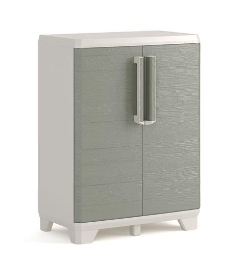 - Prostorná skříň Keter Wood Grain Low slouží pro bezpečné uskladnění rozličných předmětů