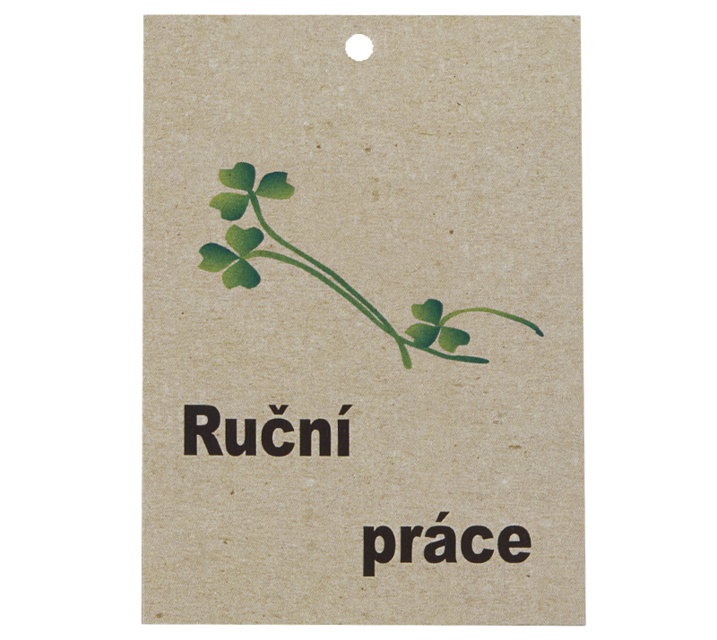 Cedulka Ruční práce - béžová se zeleným lístkem - 50x70 mm