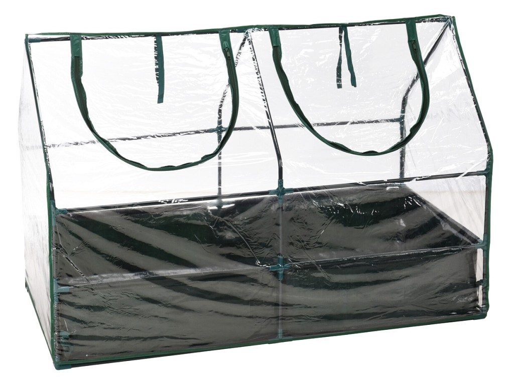 MINI GREENHOUSE WITH BAG ON BOTTOM, SIZE: 130X65X85CM, TUBES: 12X0,32MM, CONNECTED BY PP PARTS, 1 PE BOTTOM WITH EYES, MATERIAL COVER: 10DMM PVC, STEEL TUBE: DIA 12MM THICKNESS: 0,26MM, POWDER COATING ON THE SURFACE, CONECTOR: PP, BLACK ZIPPER, BLACK EDGE, PACKED IN COLOURBOX/ 735X80X175MM,...