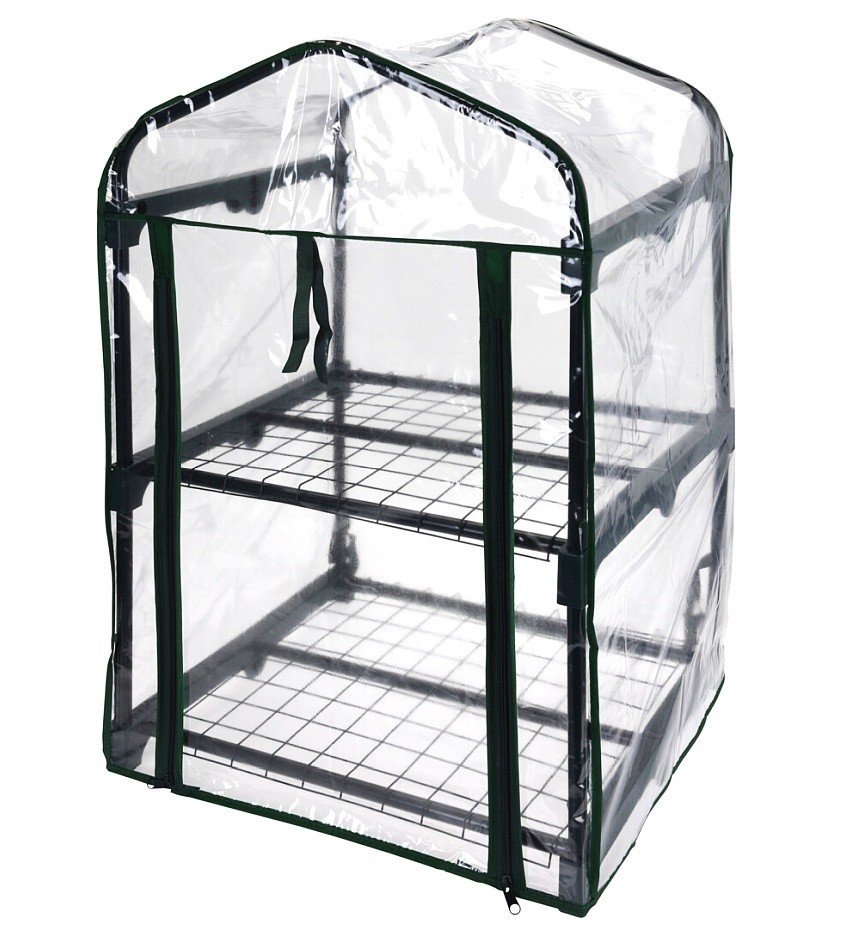 GREENHOUSE 2 TIER, SIZE 50X45XH80CM, METAL FRAME 16X0,4MM IN GREEN COLOUR, PP CONNECTORS IN GREEN, TRANSPARENT PV COVER 0,11MM, EACH IN COLOUR BOX/ 440X70X520MM, Colour Box: , 500X450X800MM / CFT 3,10,(3.871/40ft HQ)